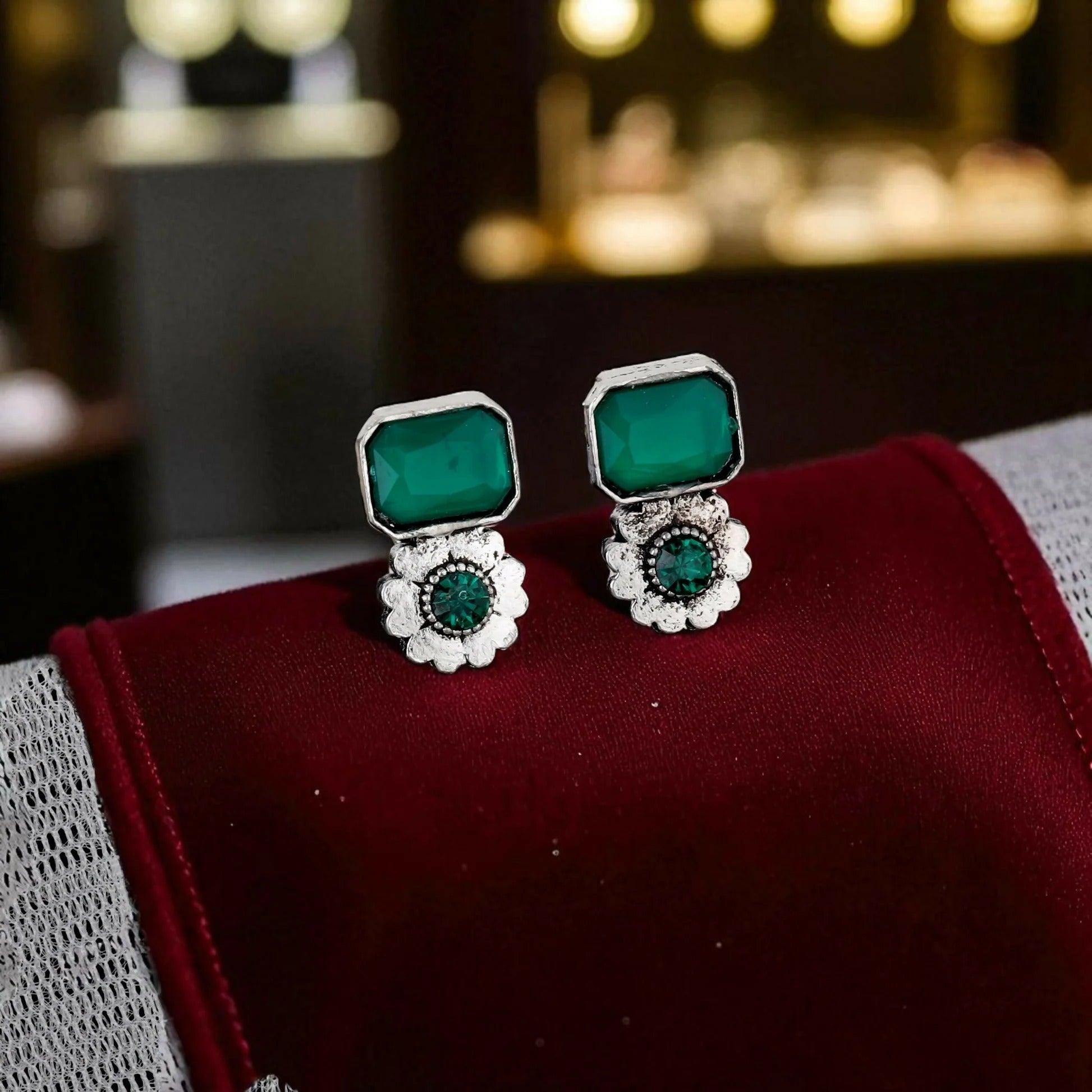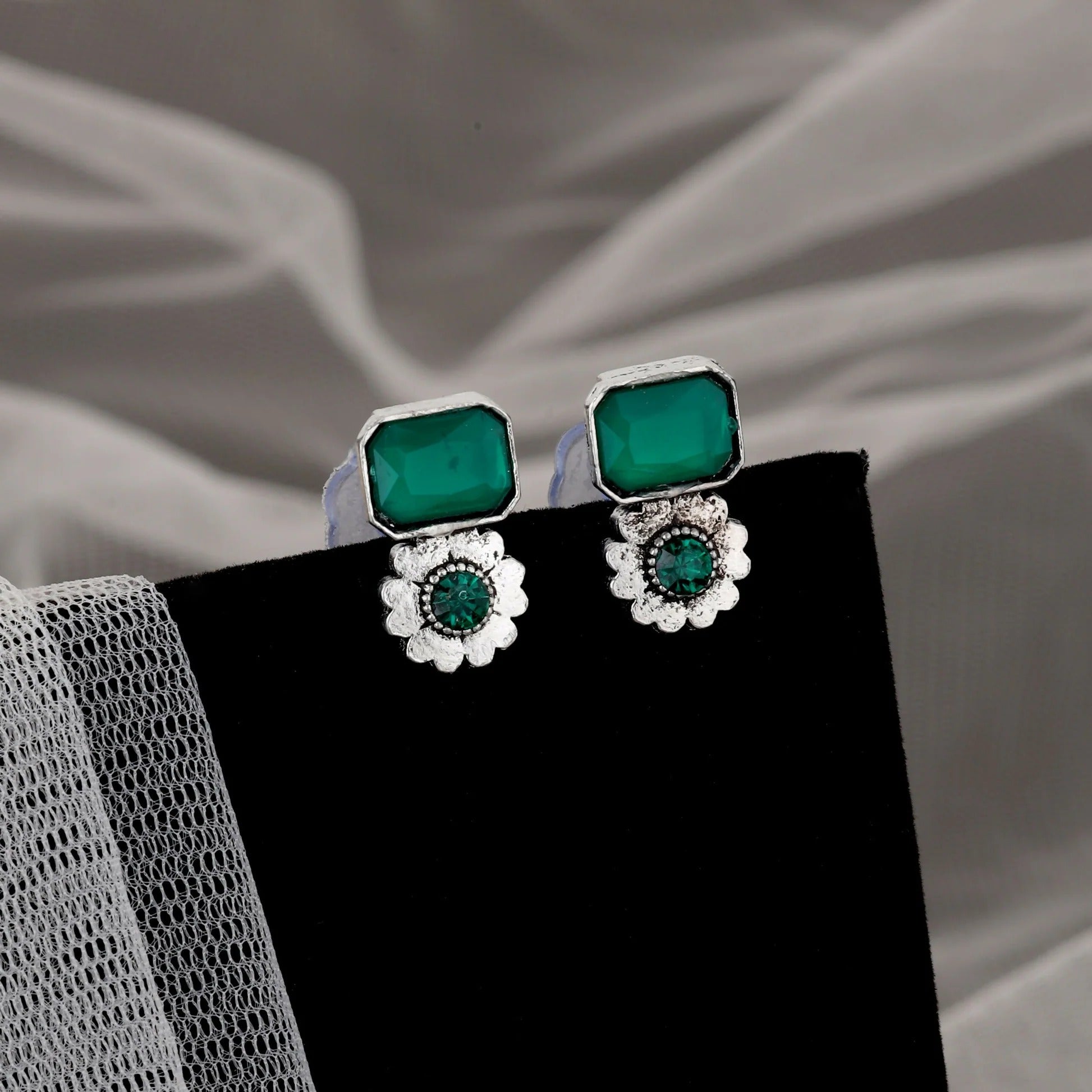 Bohemian Oxidized Silver Choker Set with Emerald Green Stones | Lightweight, Stylish